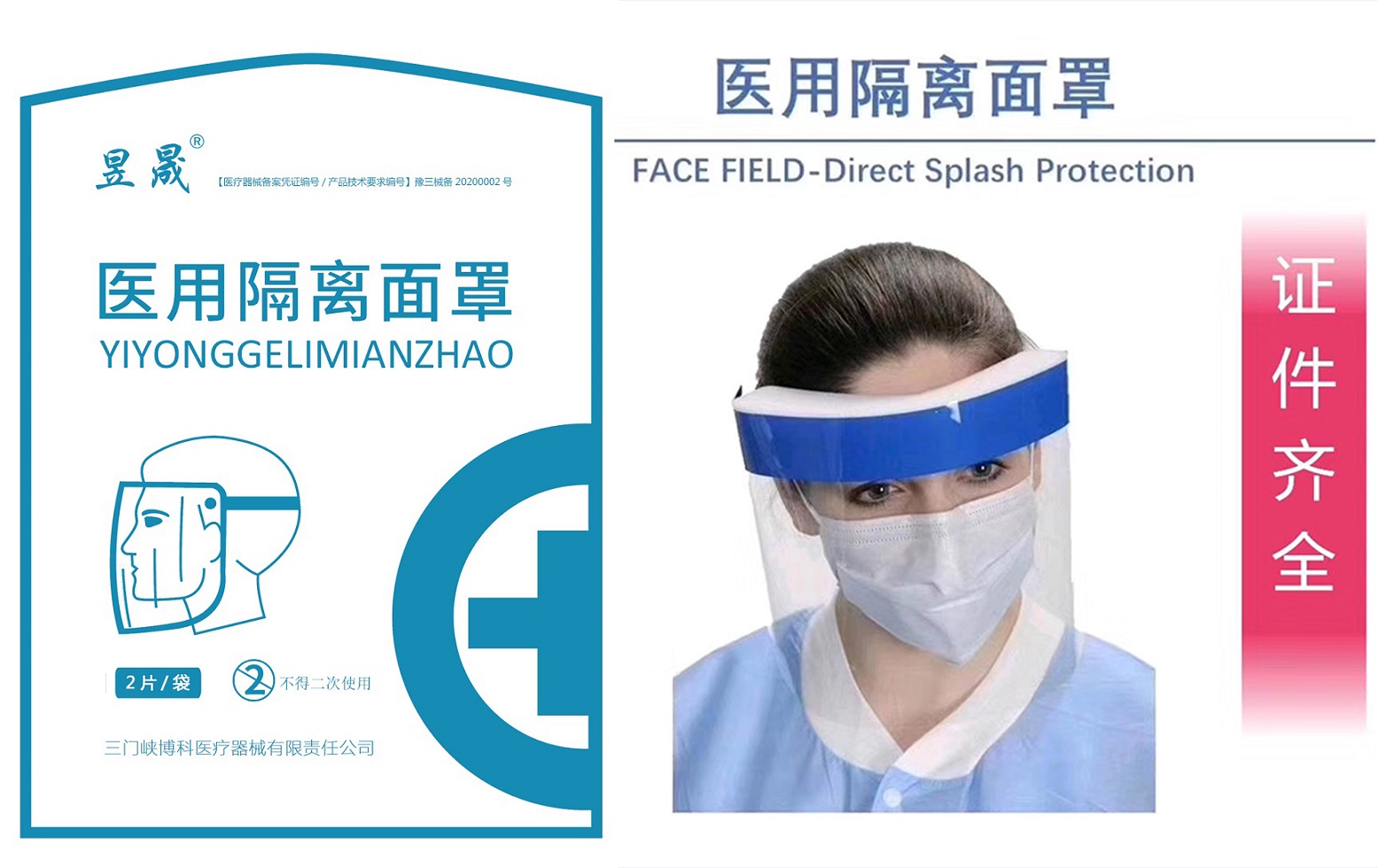 三门峡博科医疗生产的医用防护面罩由防护罩、泡沫条和固定装置组成。非无菌提供,属于一次性用品,不可重复使用。面屏部分采用医用级材料制成,抗冲击能力效果好,防止化学液体飞溅,能有效保护面部不受伤害。前端采用厚海绵设计,长时间佩戴无压力,凹槽海绵设计可以增加空气流量,提高佩戴舒适感。22cm*33cm的超大面屏,无视觉扭曲,视野开阔,防护更安全 ,可以覆盖整个面部,对眼睛、鼻腔、口腔均能形成防护,能够防止唾液、气流直接接触人的面部。